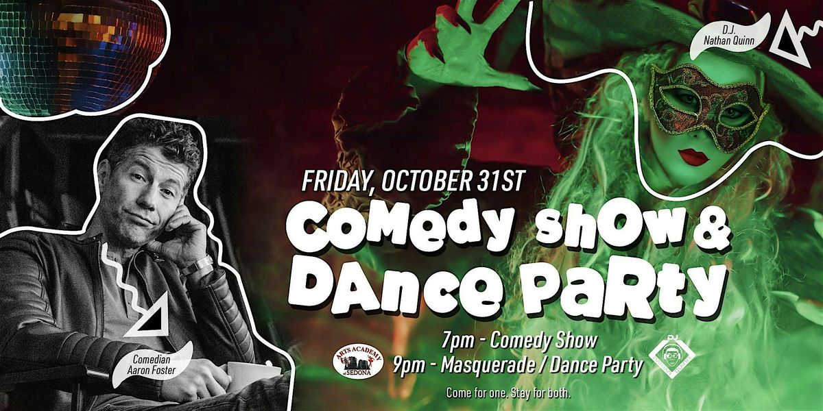 Join the Arts Academy of Sedona for an uncommon Halloween event. It’s two events in one…a comedy show and dance party.