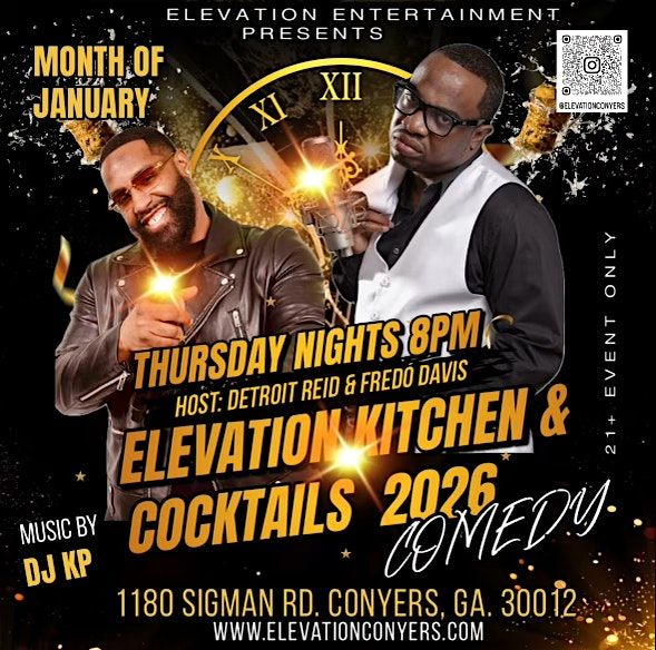 Get ready to laugh out loud every Thursday night at ElevationConyers! Join us in person for an evening packed with hilarious performances that will keep you entertained all night. Whether you're coming solo or with friends, this comedy show is the perfect midweek pick-me-up. Don't miss out on a chance to experience great vibes and even better jokes at ElevationConyers!
