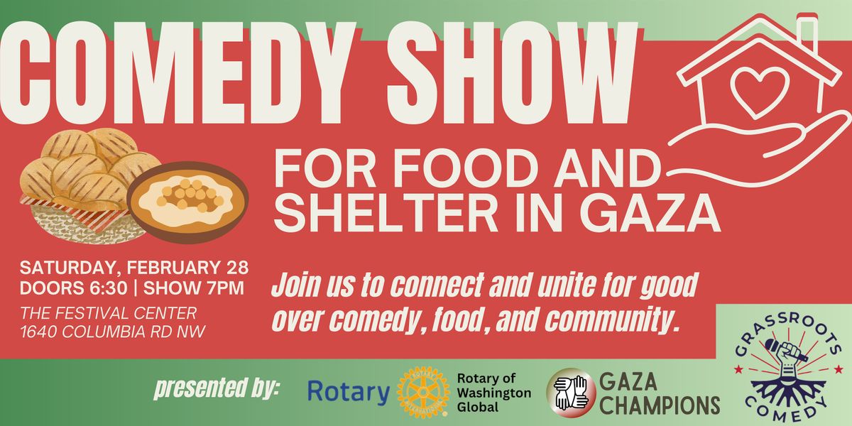 This fundraiser is produced in partnership with the Rotary Club of Washington Global , a DMV-based Rotary community of international development professionals committed to peacebuilding, service, and global impact. Proceeds from the show will support Gaza Champions, providing direct emergency assistance for families in Gaza - specifically funding food support and shelter relief for people facing urgent humanitarian need.