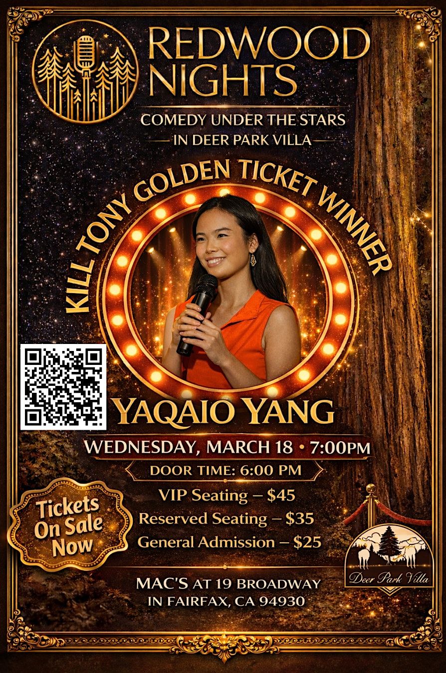 We are excited to announce the Northern California comedy debut of Yaqiao Yang, the funny and sensational K*ll Tony Golden Ticket Winner.
