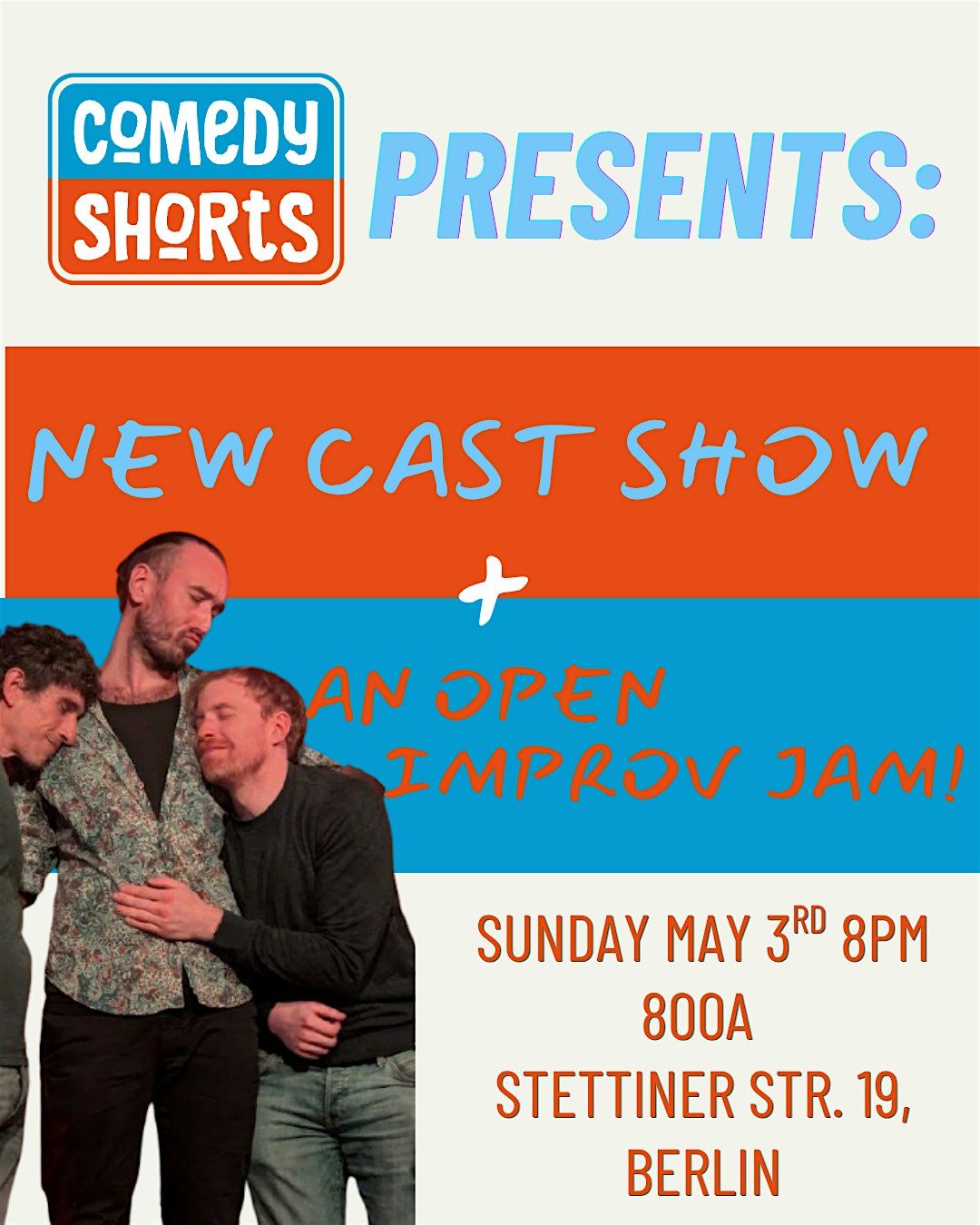 On Sunday May 3rd our new cast will set the stage on fire, performing for the first time on the comedyShorts stage and right after that YOU get to try it out in our first open Jam of the year, where we will teach you some of our classic games and give you the chance to try them out!