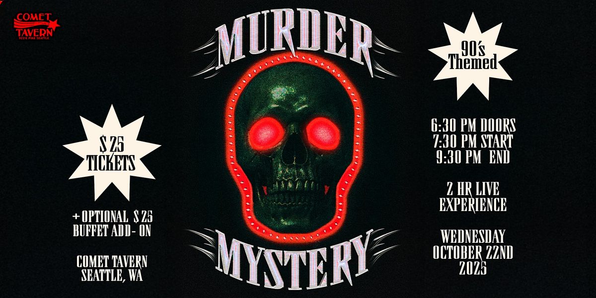 There’s a killer among us at Comet Tavern 👀 Join us for our first-ever M**der Mystery (with a 90’s twist) on Wednesday, October 22nd from 7:30–9 PM, with doors opening at 6:30. Tickets are $25, with a $25 Lost Lake buffet add-on available. See you soon, detectives.