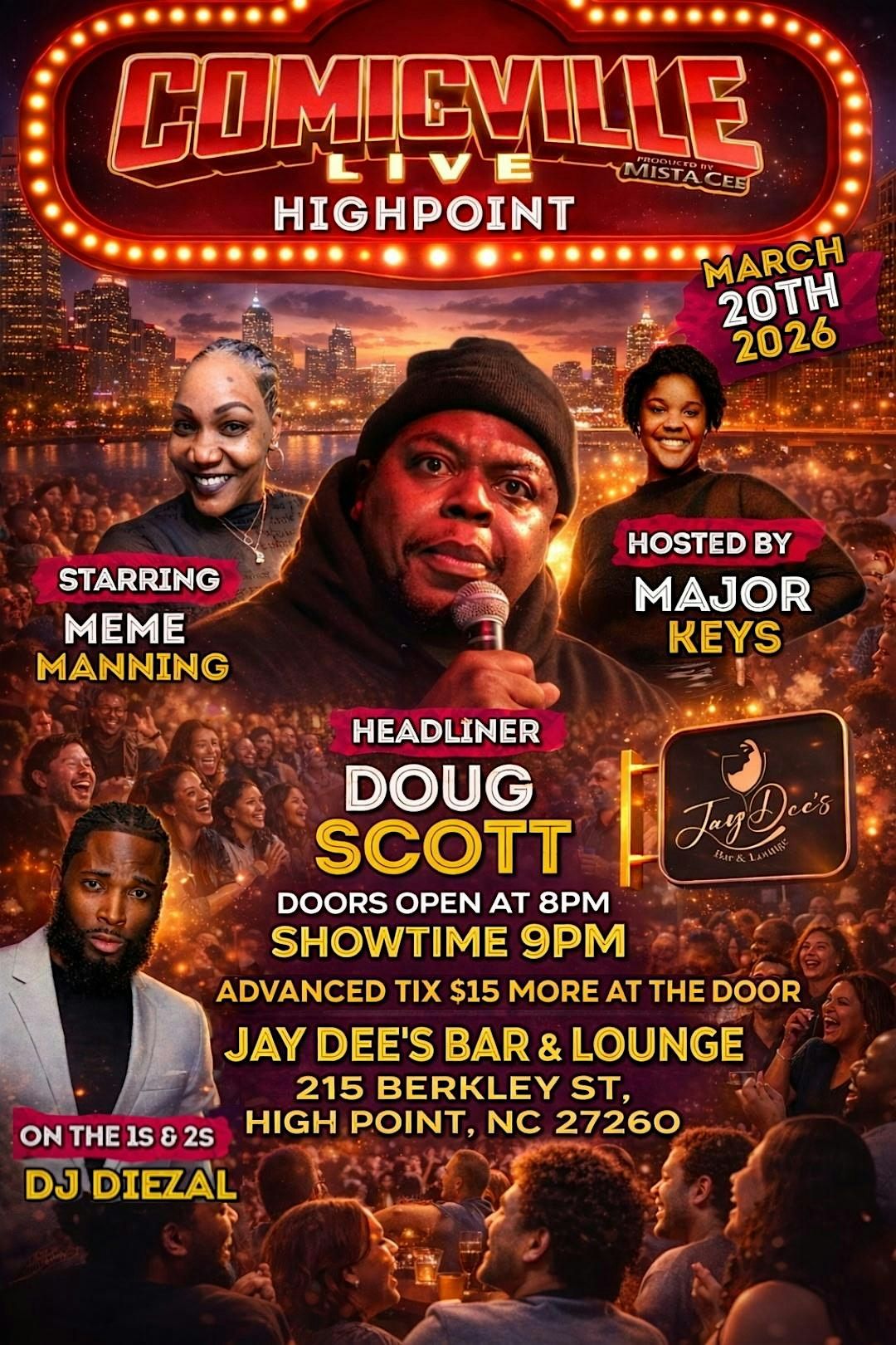 Join us at JayDee's Bar and Lounge on March 20, 2026 at 9:00 PM (Eastern Time) for a night full of laughs, fun, and good vibes. Whether you're a comic fan or just looking for a chill evening, COMICVILLE is the place to be. Grab your friends, enjoy the great atmosphere, and let's make some awesome memories together!