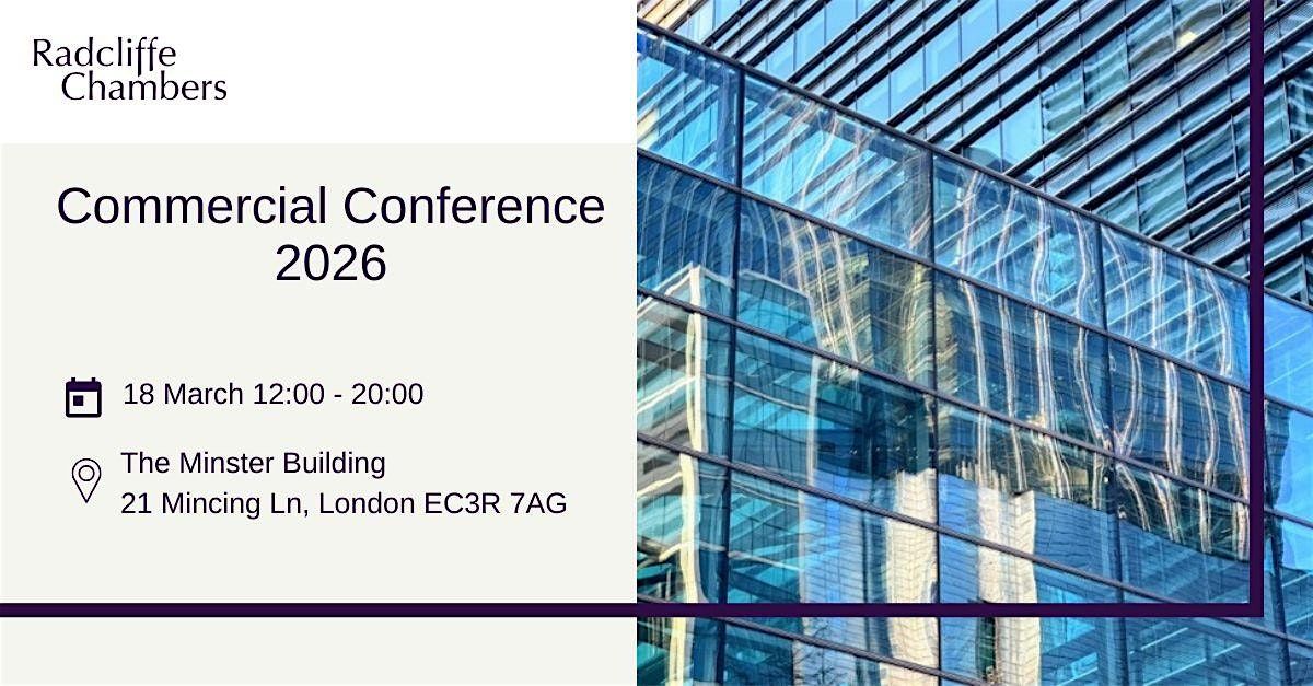We are delighted to announce Radcliffe Chambers’ Commercial Conference 2026, taking place on Wednesday 18 March, from 12:00 to 20:00 at Cavendish Venue, The Minster Building.