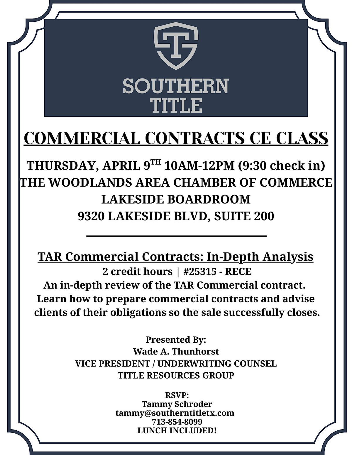 Don't Miss Our Commercial Contracts CE Class on April 9th!
