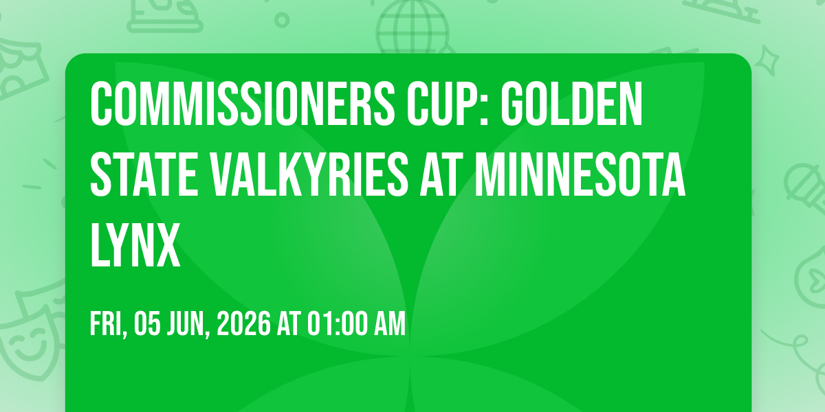 📍 Location: 44.9795, -93.2761✨ Enter a world of endless possibilities at Commissioners Cup: Golden State Valkyries at Minnesota Lynx, where every moment tells a story! 🏛️ The stunning Target Center in vibrant Minneapolis, MN transforms into a realm of wonder on June 5th, 2026 at 01:00 AM. 🌟 They have crafted an experience that goes beyond the ordinary, combining elements of surprise, delight, and pure entertainment. Every detail has been thoughtfully considered to ensure your journey with us is nothing short of extraordinary. 🎯 Join fellow adventure seekers and memory makers in this celebration of imagination and innovation. 🎊 Reserve your spot today and be part of something truly special!