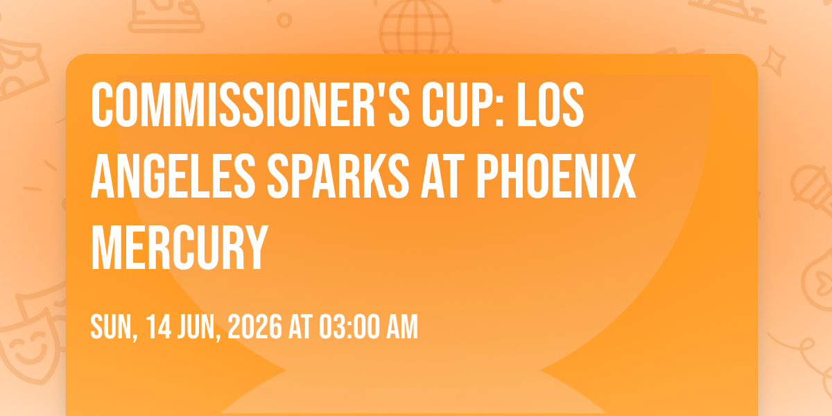 📍 Location: 33.4458, -112.071🎉 Welcome to Commissioner's Cup: Los Angeles Sparks at Phoenix Mercury, where dreams come alive and possibilities are endless! 🏛️ Join us at Mortgage Matchup Center in the heart of Phoenix, AZ for an event that defies expectations. 📅 On June 14th, 2026 at 03:00 AM, be part of something truly extraordinary as we bring together innovation, entertainment, and pure magic. ✨ Every aspect has been carefully designed to ensure an unforgettable experience for all our guests. Whether you're seeking adventure, inspiration, or simply a break from the ordinary, this event promises to deliver beyond your wildest dreams. 🎊 Prepare for a journey into the extraordinary!