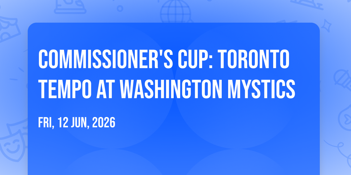 π Location: 38.8469, -76.9914π Be part of history at Commissioner's Cup: Toronto Tempo at Washington Mystics, an extraordinary gathering that will captivate your imagination! ποΈ The prestigious CareFirst Arena in Washington, DC sets the stage for an unforgettable experience on June 12th, 2026 at 11:30 PM. β¨ They are bringing together the finest elements of entertainment and innovation to create moments that will take your breath away. From the moment you arrive, you'll be immersed in an atmosphere of wonder and excitement. π― This carefully planned event ensures every guest experiences something truly special. π Early booking is recommended for this must-attend event of the season!