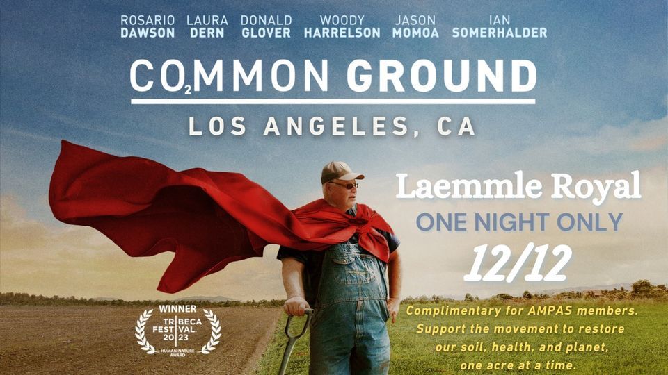 Note: AMPAS members, your card will admit you and a guest to any screening of Common Ground subject to seating availability.
