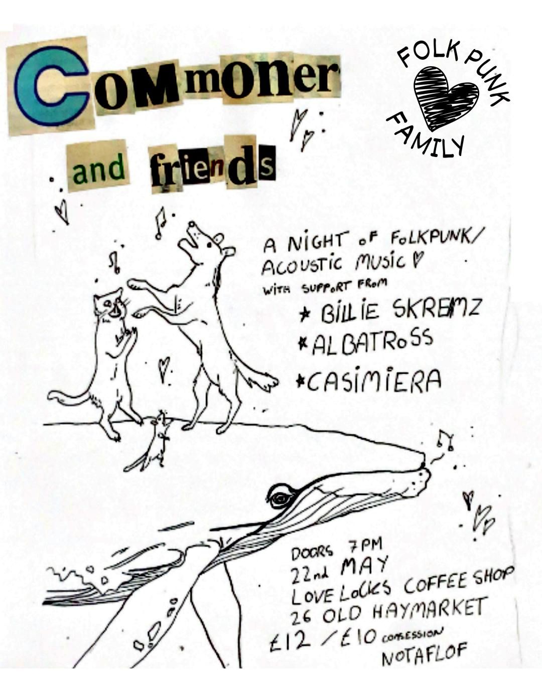 Join Commoner and the denizens of the local liverpool folk punk acoustic night for an evening of good music and lovely energy at Lovelocks CafeDoors at 7