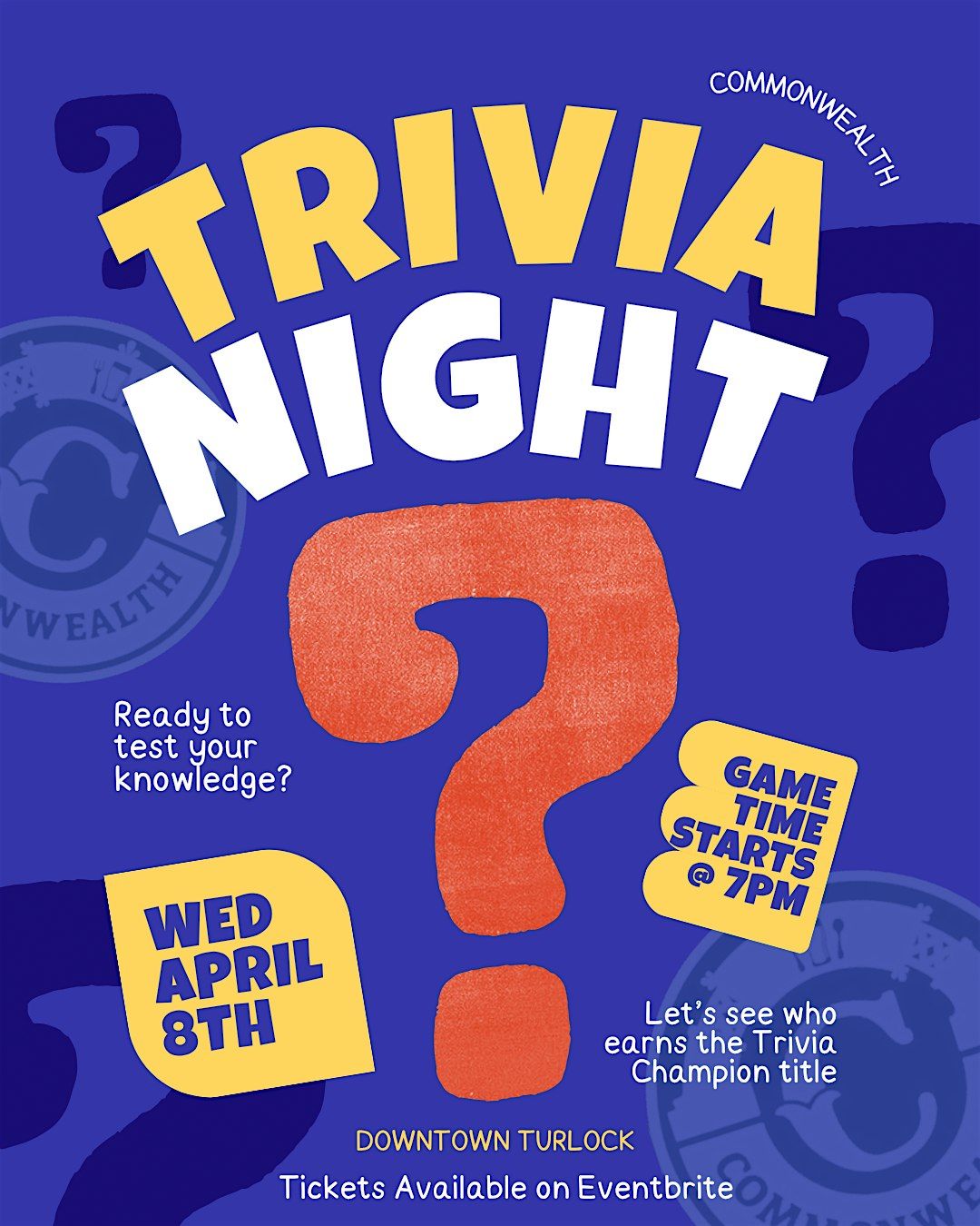 Bring your brainiac buddies and come prove your smarts at Trivia Night down at Commonwealth Turlock Wed April 8thAbout this Event