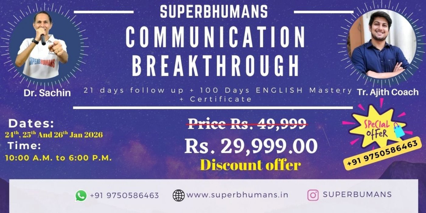 SUPERBHUMANS - Personality Development training center in Anna Nagar, Old #50, A Block 5th St, near Annanagar Rountana CPS Global School, Kumaran Nagar, A Block, Annanagar East, Chennai, Tamil Nadu 600102, IndiaINR 29999.00