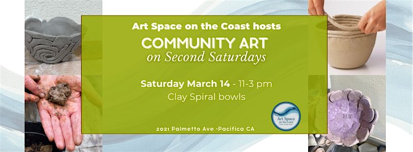 This March, Second Saturday is all about making with clay. Join us as we create spiral bowls in clay. Using coils we will shape a bowl and then smooth the inside to leave a complex texture on the outside while seeing simplicity on the inside. Art Space on the Coast will then fire the bowls to bisque and add a glaze before firing a second time. The bowls will be food safe.