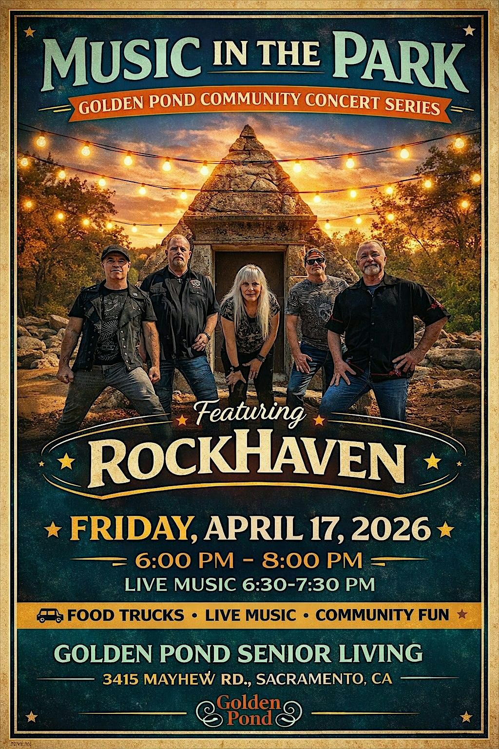 We’re excited to kick off our Music in the Park Community Concert Series with live music from RockHaven, a high-energy variety cover band performing favorites from the 70s through today. Expect a great mix of rock, pop, funk, country, and more — if you can dance to it, they’ll probably play it!