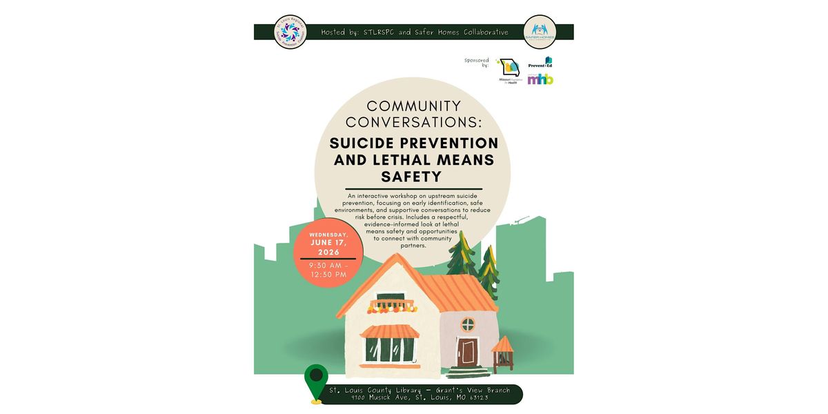Hosted by the St. Louis Regional Suicide Prevention Coalition and the Safer Homes Collaborative, this interactive morning workshop focuses on upstream approaches to suicide prevention, highlighting how early identification, environmental safety, and supportive conversations can reduce risk before a crisis escalates. The session places particular emphasis on lethal means safety, with a respectful, evidence‑informed focus on firearms as a critical and preventable risk factor. Through facilitated networking sessions, we will engage with regional partners, ask questions, and build networks that support an ongoing, community‑driven approach to suicide prevention.