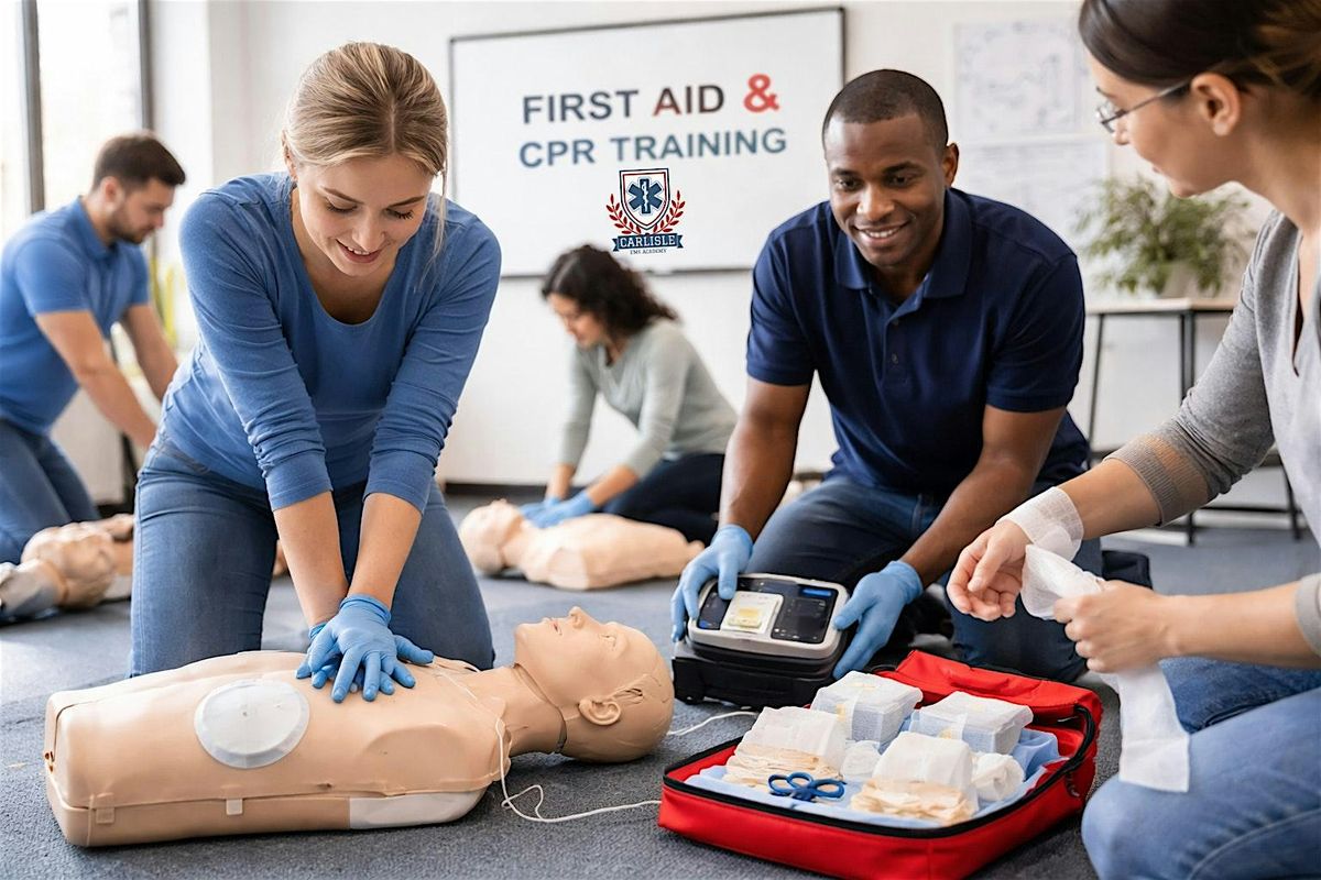 Through hands-on instruction and expert guidance, you’ll learn how to recognize and respond to cardiac emergencies using CPR and an automated external defibrillator (AED), as well as how to manage common first aid situations such as bleeding, burns, fractures, choking, and sudden illness. Emphasis is placed on practical decision-making, scene safety, and effective early care until advanced help arrives.
