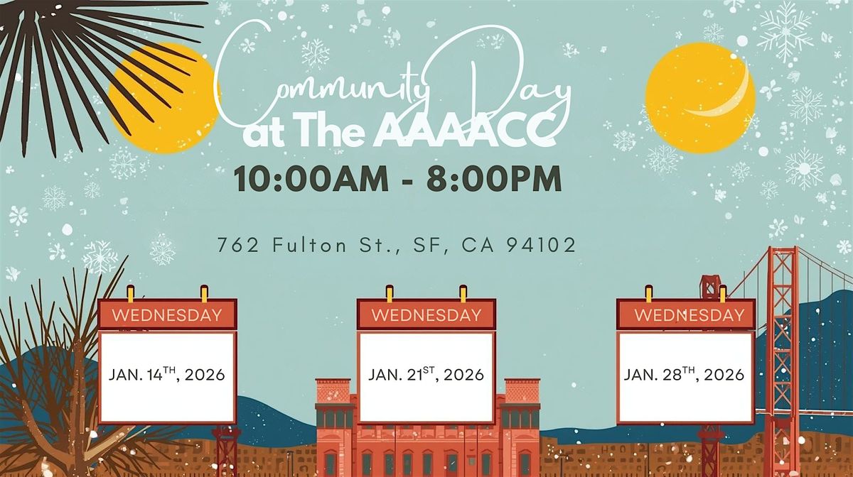 Community Day at the AAACC is a an offering continuing our legacy of being an accessible space for the Black San Francisco community and the San Francisco community at large in the heart of the Western Addition/Fillmore neighborhood.