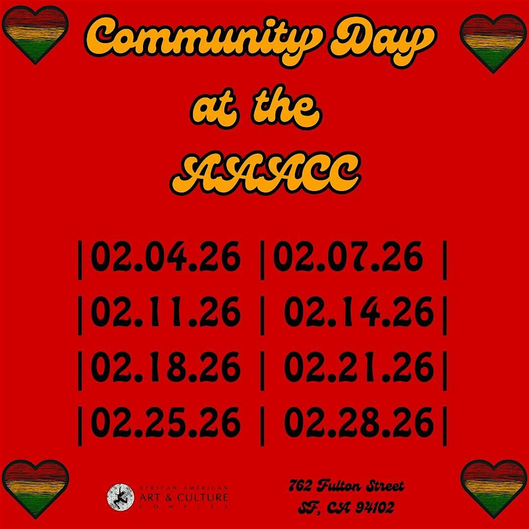 Community Day at the AAACC is a an offering continuing our legacy of being an accessible space for the Black San Francisco community and the San Francisco community at large in the heart of the Western Addition/Fillmore neighborhood.