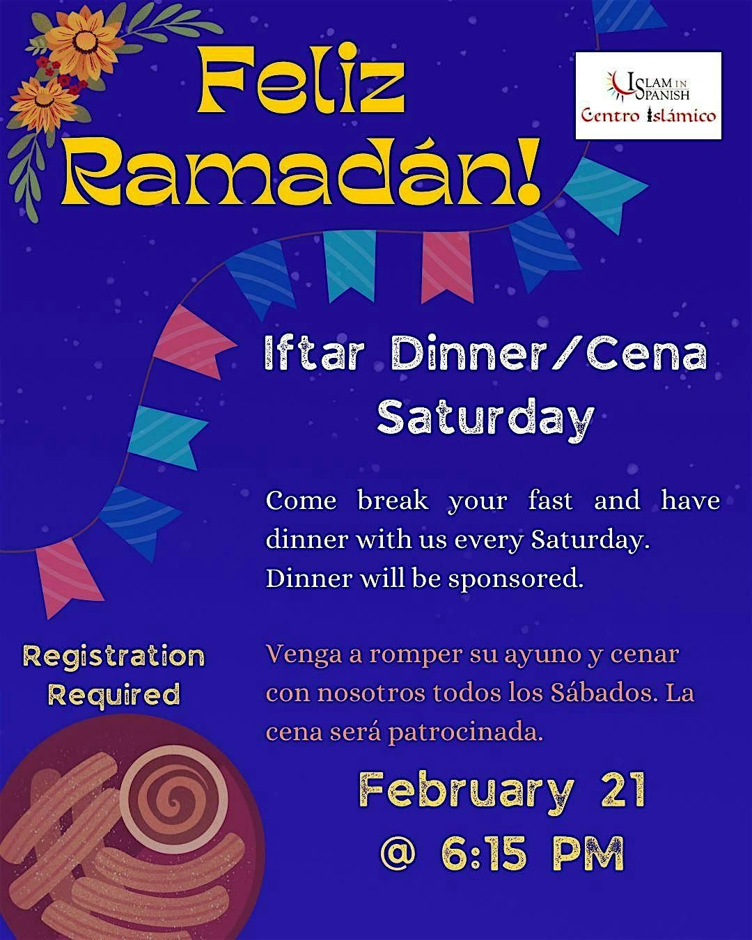 Feliz Ramadán! Join Us for Our Saturday Iftar Dinner. Acompáñanos para la cena comunitaria abierto para todos.