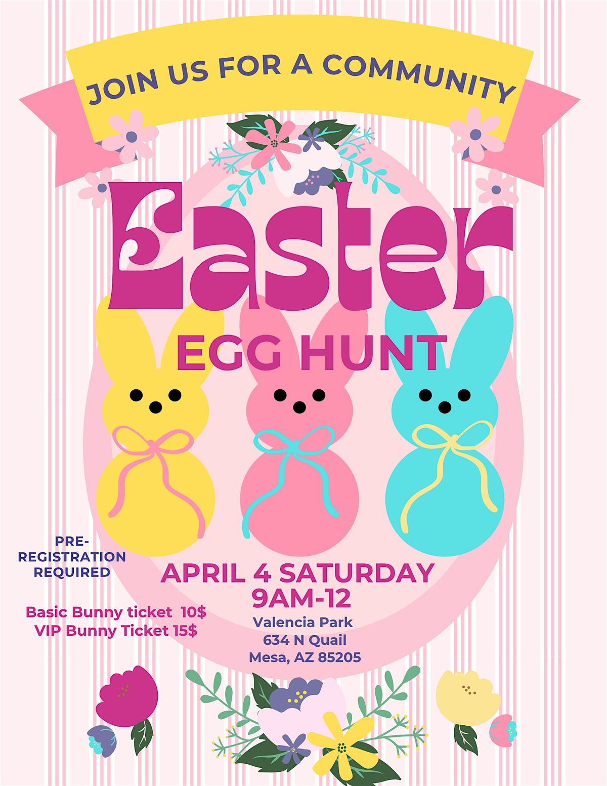 Join our Community Easter Egg Hunt! Age-grouped hunts, Bunny photos, tattoos, bubbles, chalk art & prizes. Only 50 spots!