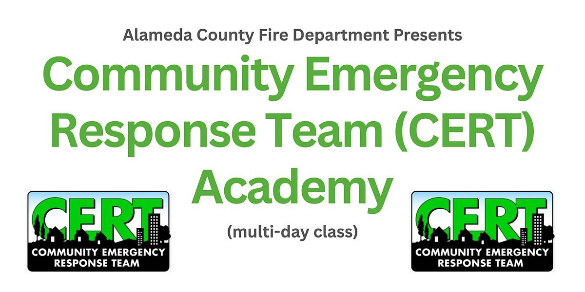 THE ALAMEDA COUNTY FIRE DEPARTMENT (ACFD) offers an opportunity to parcipate in a Community Emergency Response Team (CERT) Training Academy! Participants will complete 24 hours of CERT training on three consecutive Saturdays. Training academy dates are June 13, 20, and 27. CERT training will include both classroom instruction and hands-on training. Class registration is free and open to community members who are 18 years old or older. Teenagers between 14 to 17 years old may participate in the training if accompanied by a parent/guardian.