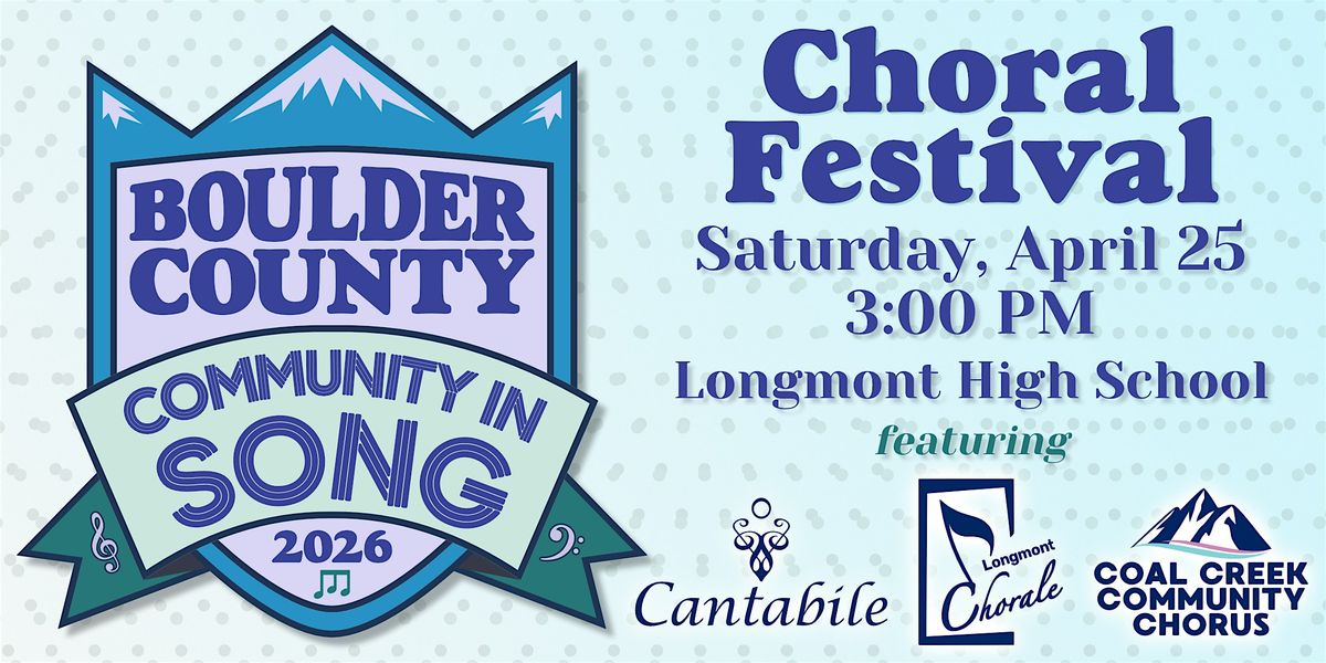 For the first time, Boulder County's choral ensembles unite in a collaborative celebration! Cantabile, Coal Creek Community Chorus, Longmont Chorale, and Rocky Mountain Chorale will each take the stage, joined by a string quartet from the Longmont Symphony Orchestra.