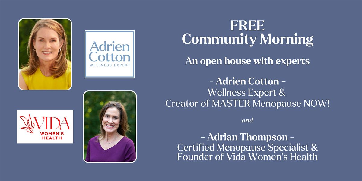 Join us for a relaxed open house at Adrien Cotton's studio in Alexandria for a casual morning designed to help you connect with other women, ask questions about perimenopause and menopause, and have honest discussions about what it actually takes to feel strong and well in midlife.
