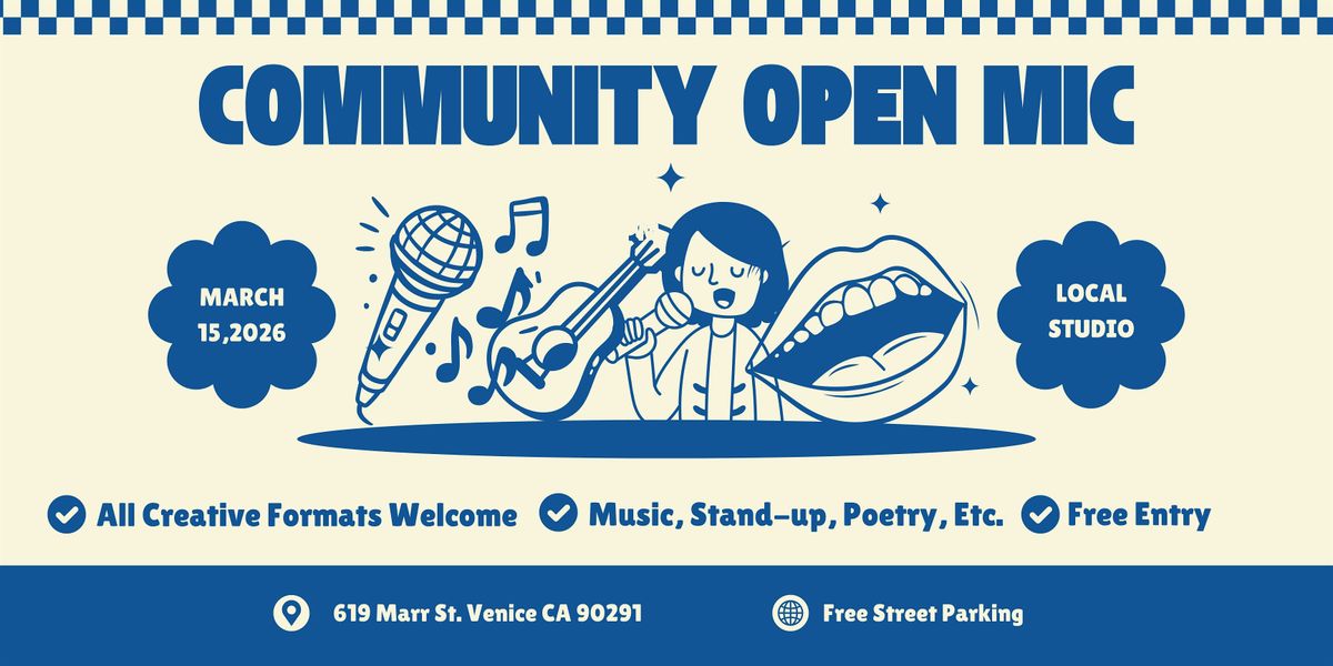 Local Venice studio hosting an evening of community and creative expression. Come try out material and share your voice in a safe, welcoming space. All forms of expression welcome.