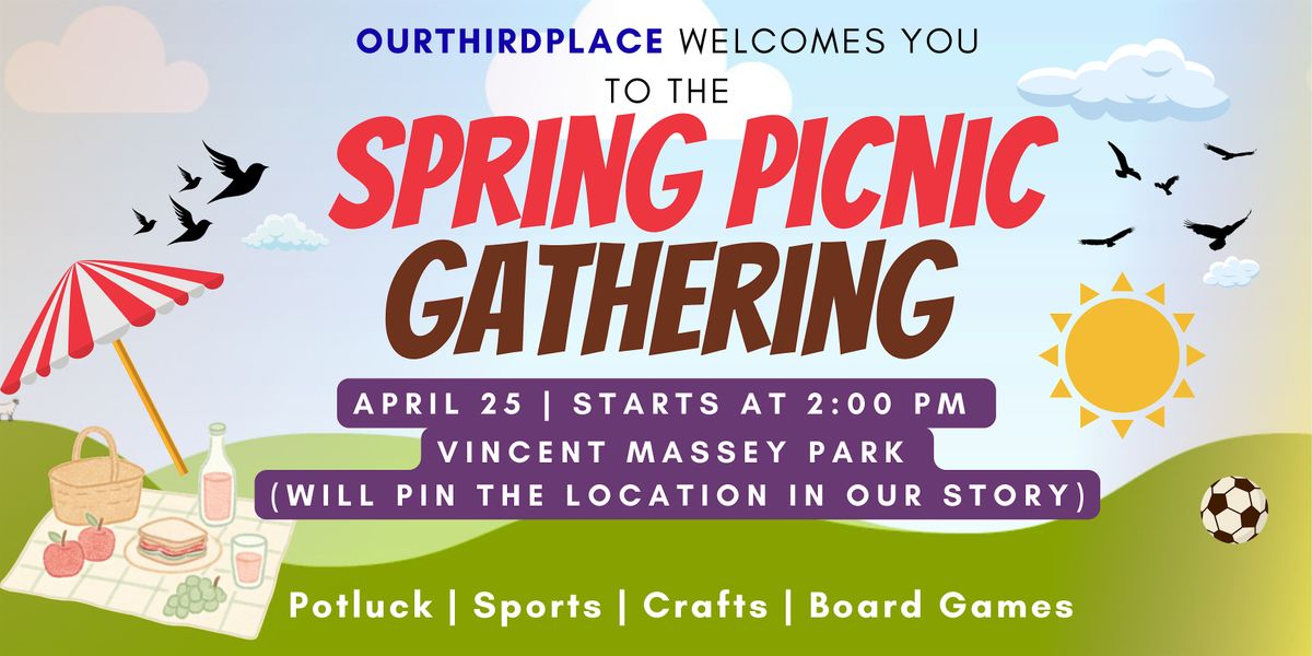 Our Third Place is so excited to invite you to our Spring Picnic Gathering. Genuinely relaxed, come as you are type of event to enjoy the outdoors, meet and connect to new faces, and spend time with the community. Our event is for the adult community, 18 and above.