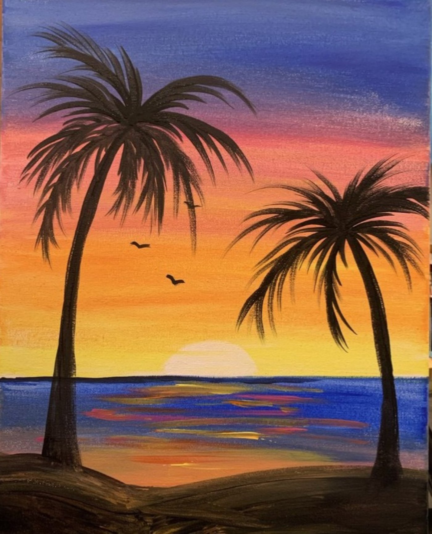 This is a beginner-friendly, all-ages art night where we’ll paint a tropical sunset step by step using acrylic paint. No experience needed — just come ready to relax, create, and connect.