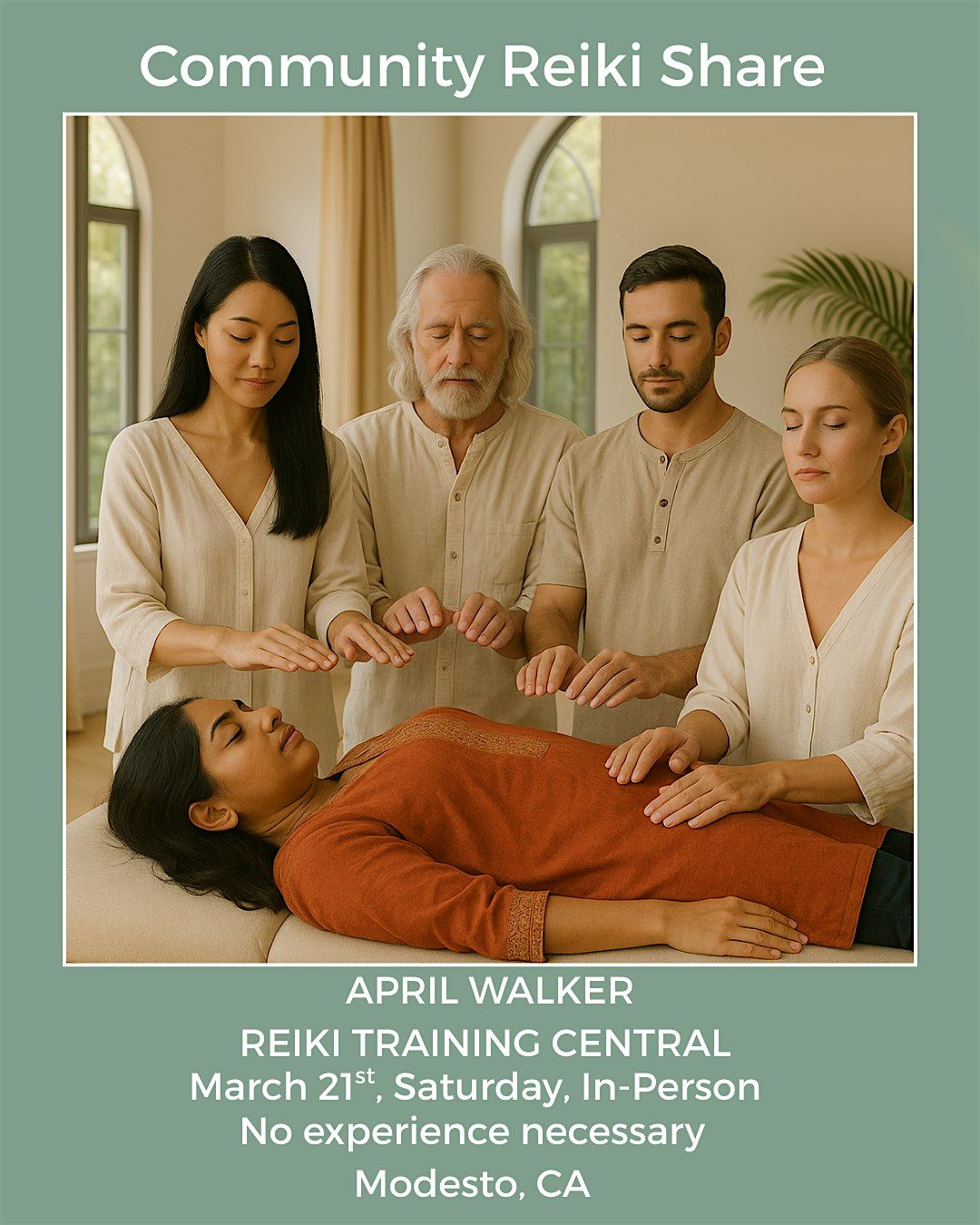 "Join us for a free In-Person Community Share, where healing meets you wherever you are. Whether you're new to Reiki or an experienced practitioner, all are welcome. Explore Reiki, spiritual topics, and meditations with me, April Walker, followed by a collective group healing session in a warm, welcoming environment. Let’s come together to share energy and support in this relaxed, friendly space."Save your spot now as we keep the numbers comfortable for the space provided. Each person must register for this in-person event. #modesto #reiki #reikishare #community