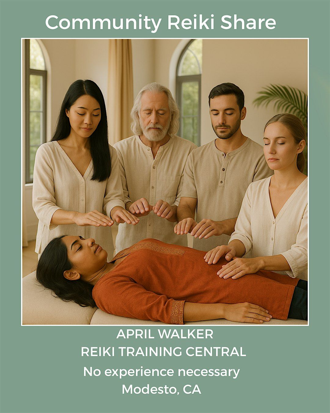 "Join us for a free In-Person Community Share, where healing meets you wherever you are. Whether you're new to Reiki or an experienced practitioner, all are welcome. Explore Reiki, spiritual topics, and meditations with me, April Walker, followed by a collective group healing session in a warm, welcoming environment. Let’s come together to share energy and support in this relaxed, friendly space."Save your spot now as we keep the numbers comfortable for the space provided. Each person must register for this in-person event. #modesto #reiki #reikishare #community