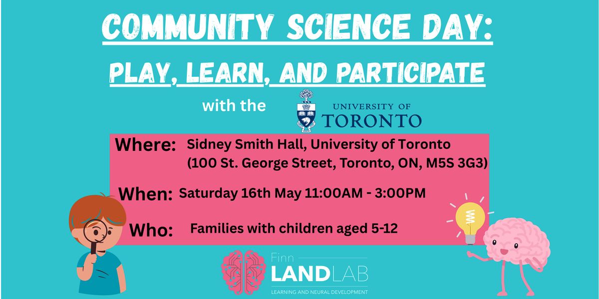Join us at the University of Toronto for a fun, hands-on event where families can learn how children learn! Take part in activities and crafts about brains, attention, memory, senses, and language, and choose to participate in child-friendly research led by the University of Toronto. Children who take part in research receive a $40 thank-you.