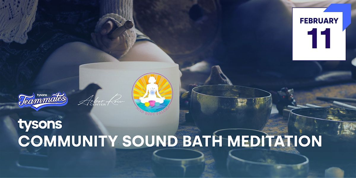Join the Tysons Teammates, Mind Body Paloma, and Arbow Row Center on Wednesday, February 11 at 5 PM for a free Community Sound Bath and Meditation event. Led by expert instructor Paloma, this immersive sound journey is designed to help your nervous system shift from fight-or-flight into a state of calm, balance, and self-healing. We invite you to come unwind, restore, and reconnect during this nourishing evening of sound and serenity.
