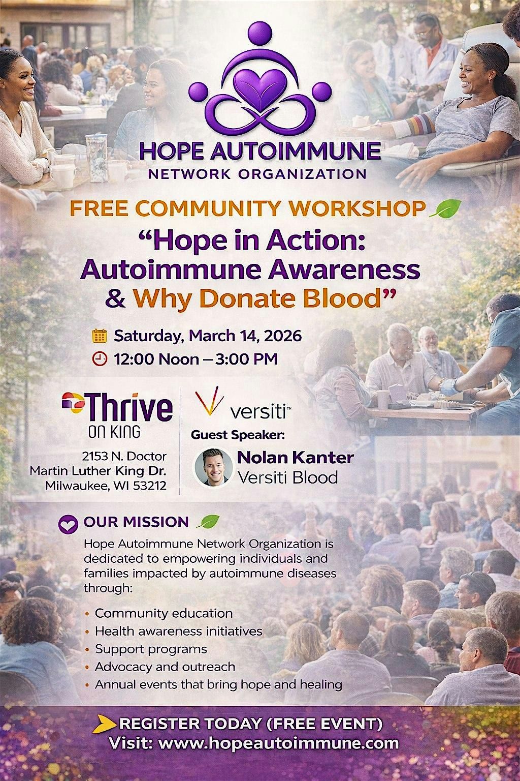 Hope Autoimmune Network will be hosting a FREE community workshop that's designed to bring awareness, education, & connection. Come learn, meet new people, and enjoy a great community experience.