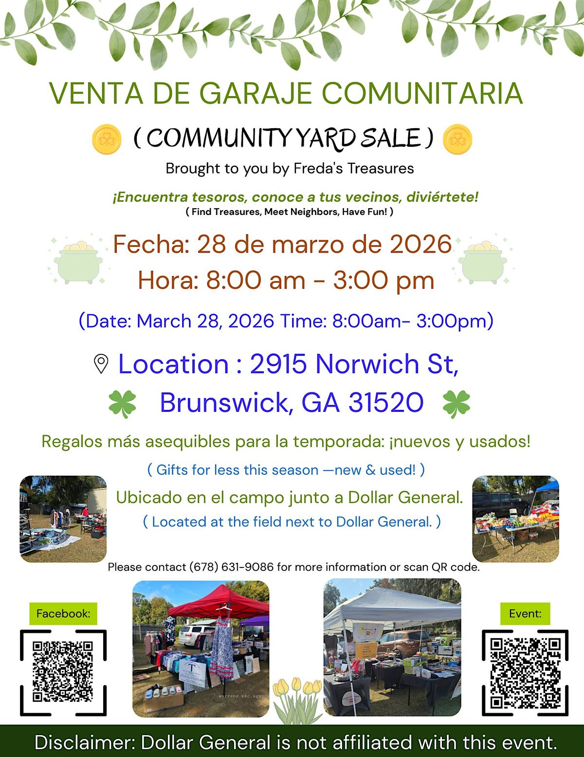Find Treasures, Meet Neighbors, Have Fun! Join us for a fun-filled day of shopping, mingling, and community spirit! Discover unique treasures, support local vendors, and enjoy great food and company. Hosted by:Freda's Treasures (Freda Johnson)