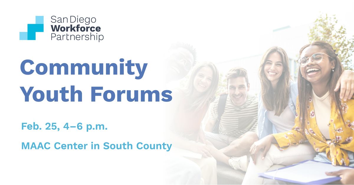 The series of forums is designed to garner community input on the development of two upcoming Request for Proposals related to supporting the needs of San Diego youth career centers and capacity building.