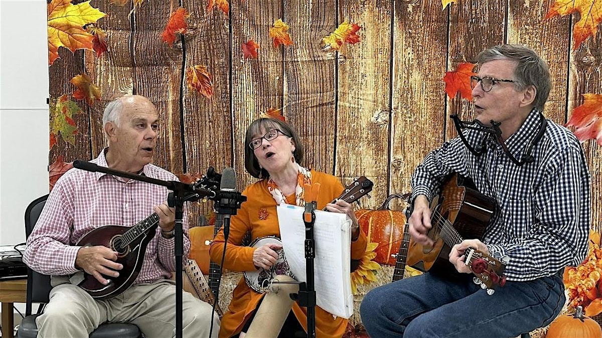 Real "down home" style Americana, gospel and Appalachian music. Two- and three-part harmony singing , accompanied by banjo, mandolin, guitar, autoharp, banjo uke, limberjack (a dancing wooden man/percussion) and harmonica. This trio loves to have fun and the audience is encouraged to sing along!