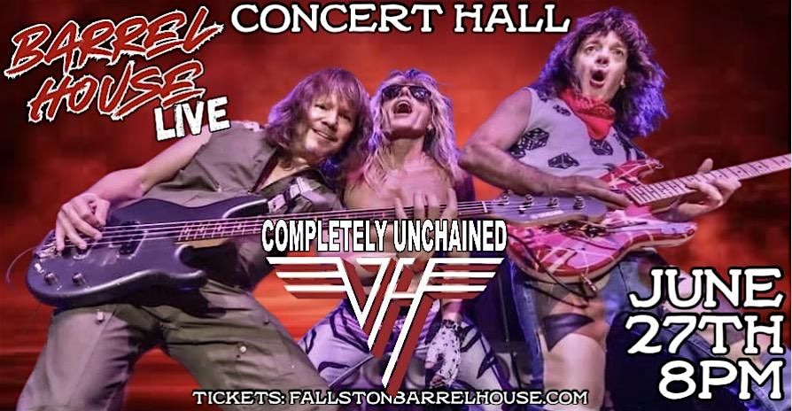 Join us for a rock concert like no other as Completely Unchained, the #1 Van Halen tribute band in the country, takes the stage at Barrel House Live in Fallston! With their unmatched energy, attitude, and musicianship, they'll transport you back to the glory days of Van Halen, delivering hits like: