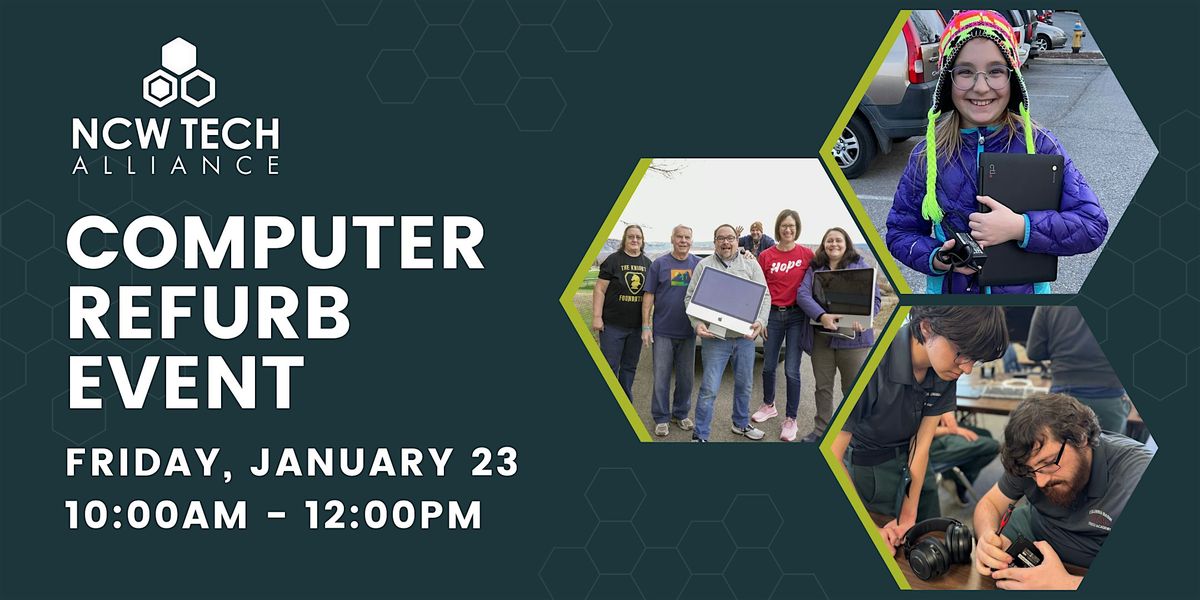 We’re hosting a hands-on Computer Refurbishment Event and you are invited! NCW Tech Alliance has received a generous donation of second-hand Chromebooks and now we are bringing volunteers together to help refurbish them so they can be redistributed back to the community through our Computers for Community program.