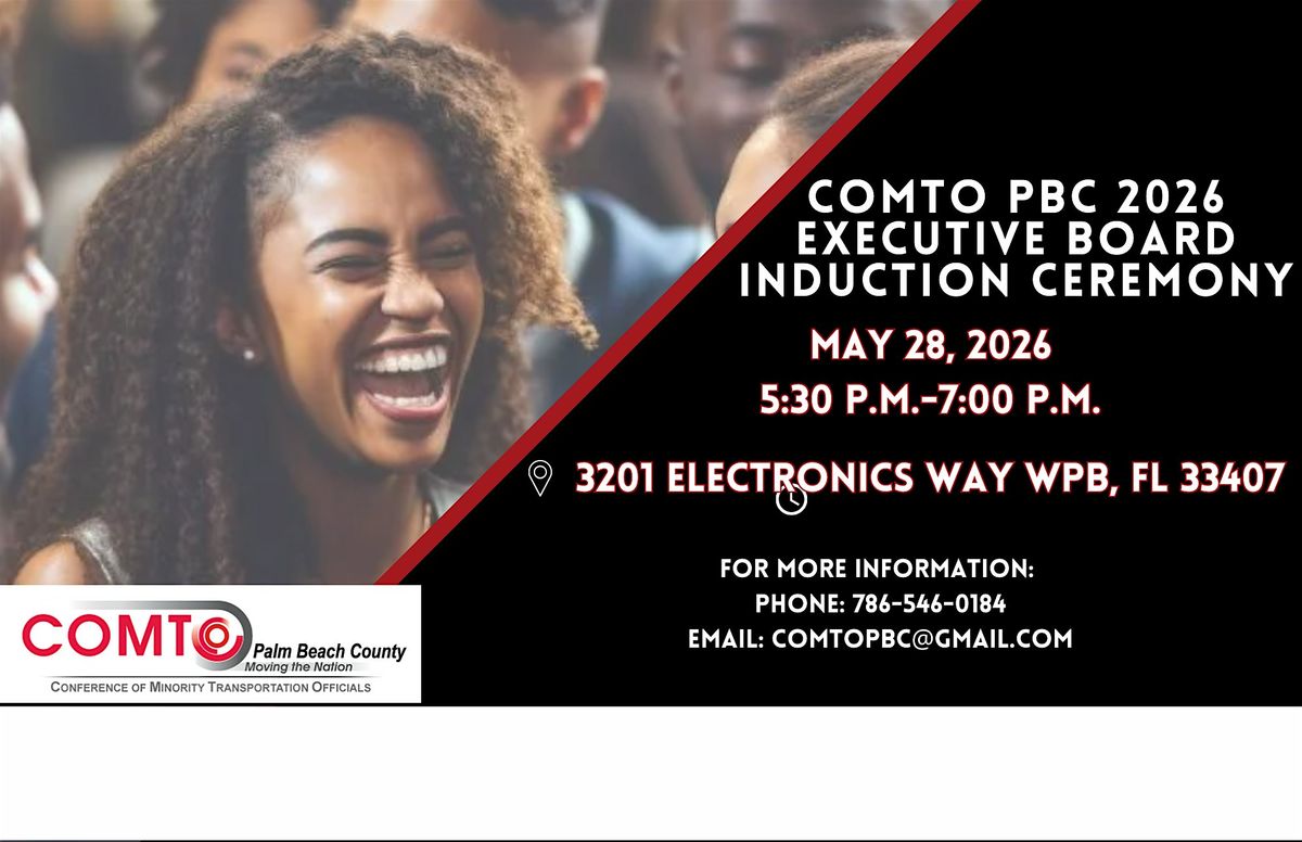 Join us as we celebrate the official induction of the 2026 Executive Board of the Conference of Minority Transportation Officials (COMTO) Palm Beach County Chapter. This special event honors the incoming leadership team and their commitment to advancing diversity, access, and equity in the transportation industry.