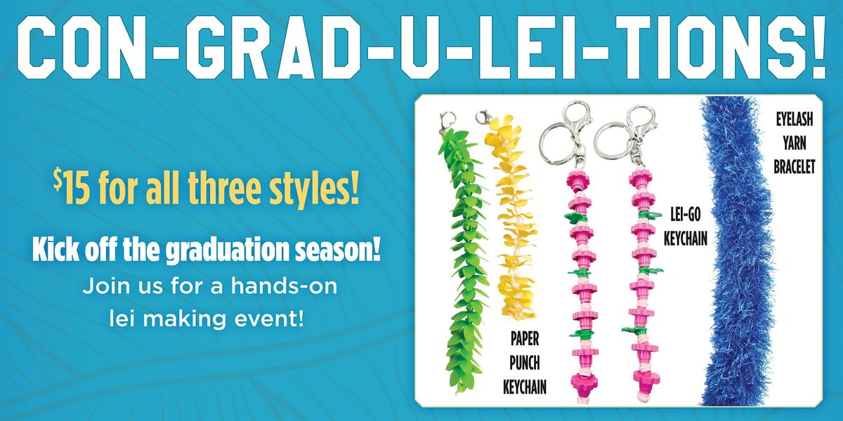 Sign up with us to have the Lei Making Experience, learn 3 different techniques to create your own spin on classic and trending Leis!