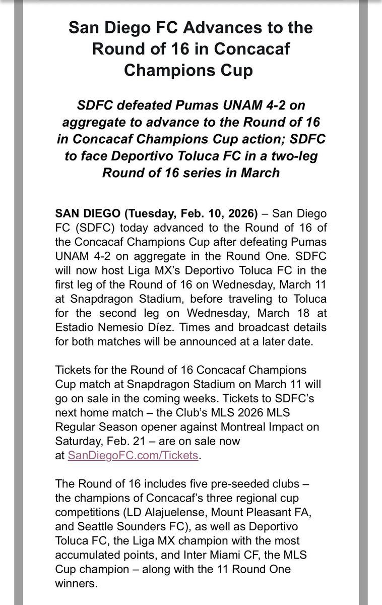 π Be part of history at CONCACAF Champions Cup: Round of 16 - San Diego FC vs. Deportivo Toluca FC, an extraordinary gathering that will captivate your imagination! ποΈ The prestigious Snapdragon Stadium in San Diego, CA sets the stage for an unforgettable experience on March 10th, 2026 at 04:00 PM. β¨ They are bringing together the finest elements of entertainment and innovation to create moments that will take your breath away. From the moment you arrive, you'll be immersed in an atmosphere of wonder and excitement. π― This carefully planned event ensures every guest experiences something truly special. π Early booking is recommended for this must-attend event of the season!http://maps.seatics.com/SnapdragonStadium_Soccer_2022-09-17_2022-07-25_0703_07252022_072130_SVGC_tn.png