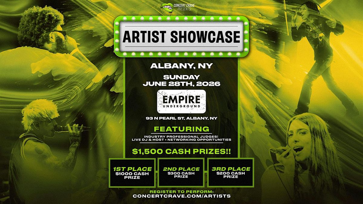 Calling all Artists & Music Enthusiasts! Step into the spotlight at the Concert Crave Artist Showcase! The ultimate event for emerging talent, happening at Empire Underground in Albany, NY! This exciting event is designed to connect artists with industry professionals and provide an unforgettable night of performances, networking, and high-energy vibes.