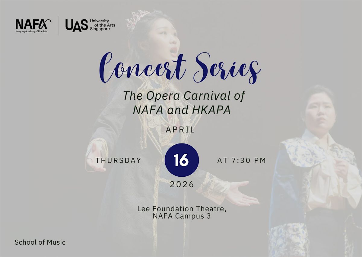 The second joint concert between NAFA and HKAPA will take place at NAFA this year, evoking fond memories of the inaugural collaboration hosted by HKAPA in 2024. In celebration of this reunion, the two institutions will present a theatrical exploration of themes such as love, faith, longing, and disguise, featuring selected highlights from the operatic repertoire, ranging from Mozart, Bellini, Rossini, and Gounod to Menotti and Dove.