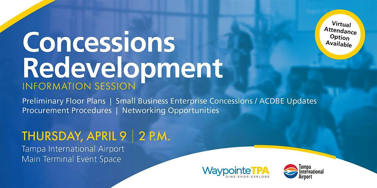 Tampa International Airport (TPA) will host a free, in-person and virtual informational session on Thursday, April 9, designed for business owners, vendors, and community members interested in future opportunities within the Airport’s Concessions program. The sessions will feature: