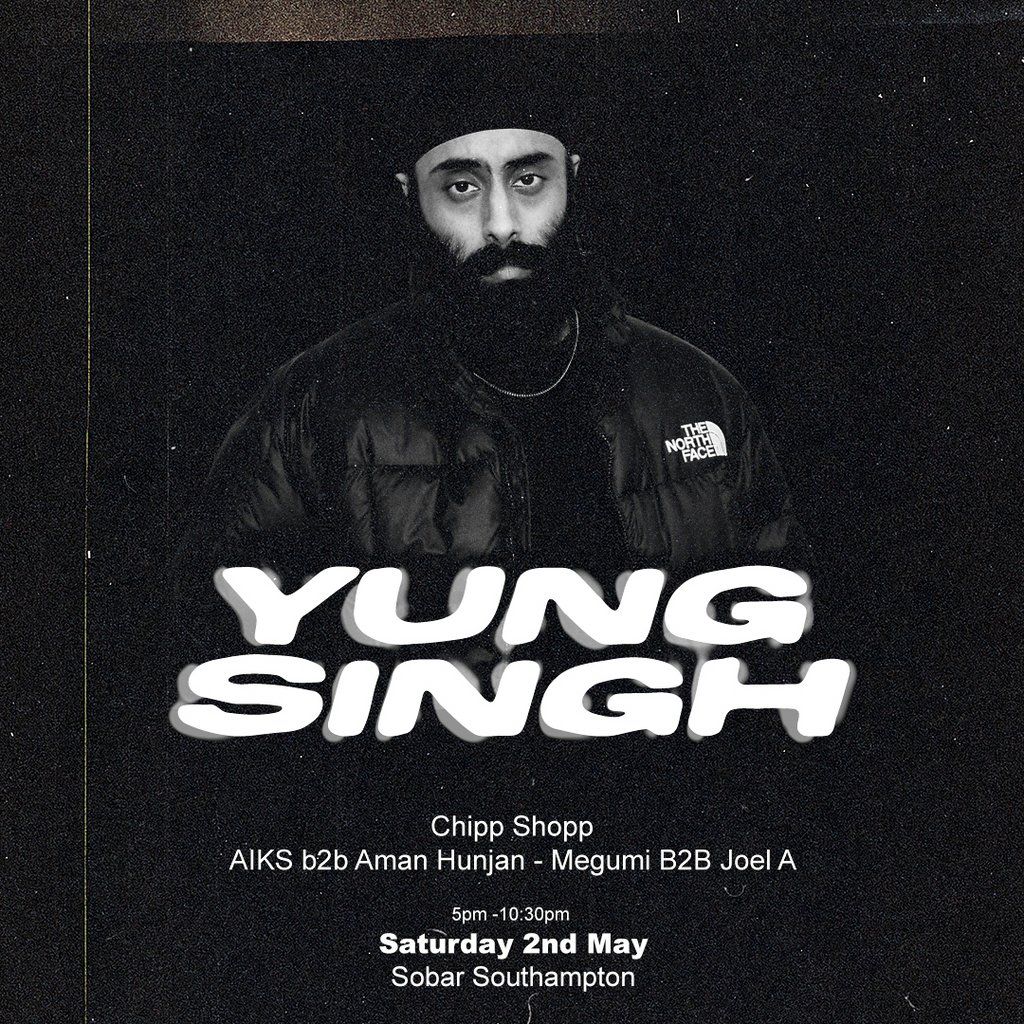One of the most exciting DJs in UK Garage in recent years comes to Sobar Southampton on May 2nd - Yung Singh.Expect a night of UKG bangers