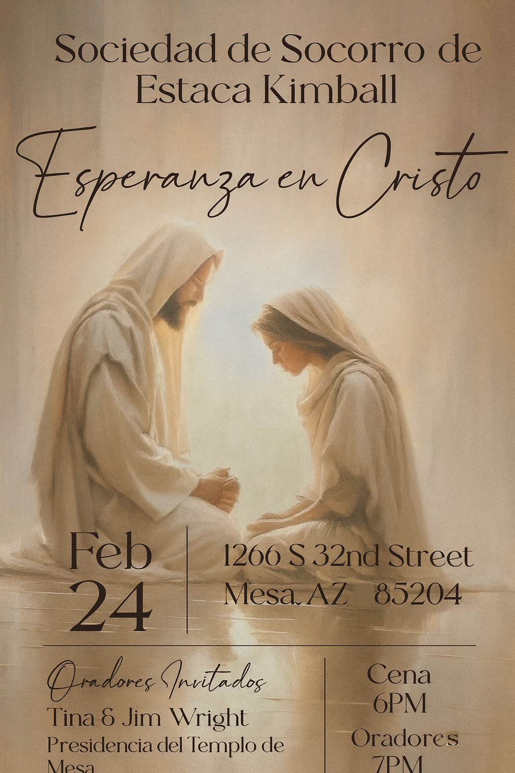 Las Sociedad de Socorro del grupo de congregaciones de la Estaca Kimball invita a todas las mujeres mayores de 18 a participar de la conferencia Esperanza en Cristo.