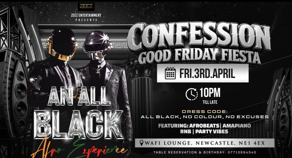 Friday 3rd April we bring you CONFESSION a premium All Black night for the grown & stylish.