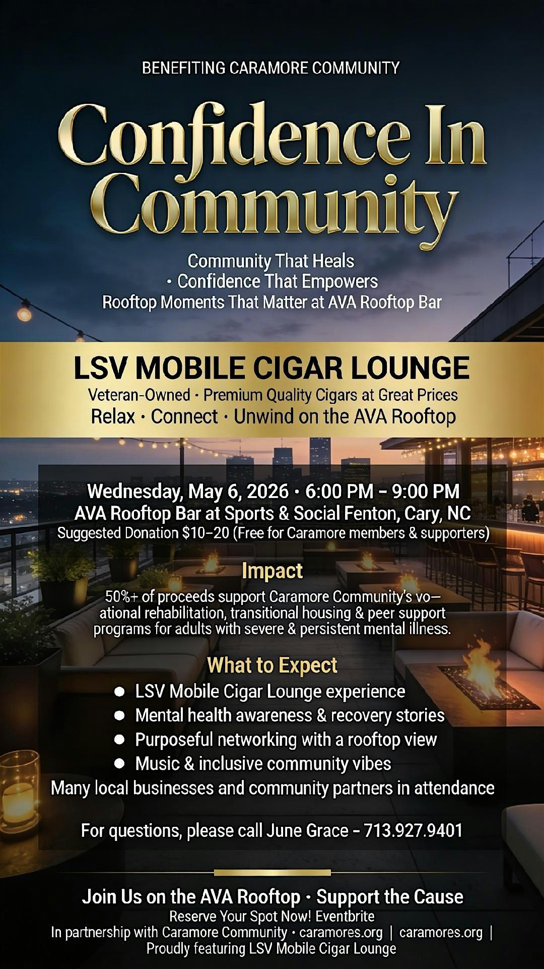 Confidence In Community, AVA Rooftop Bar at Sports & Social in Cary